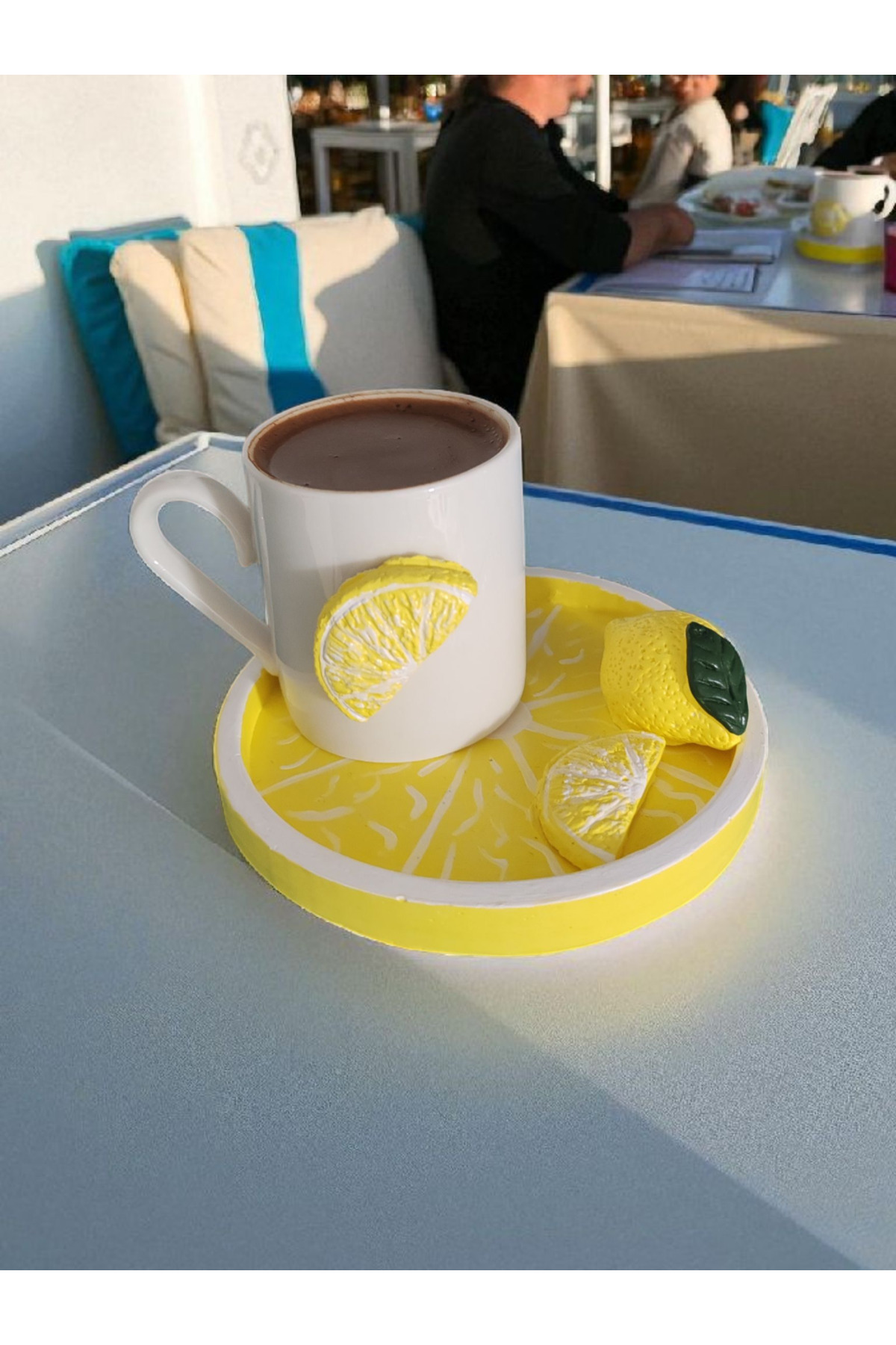 El Yapımı Etamin Peçete ve Limon Temalı Kahve Fincanı Sunum Seti