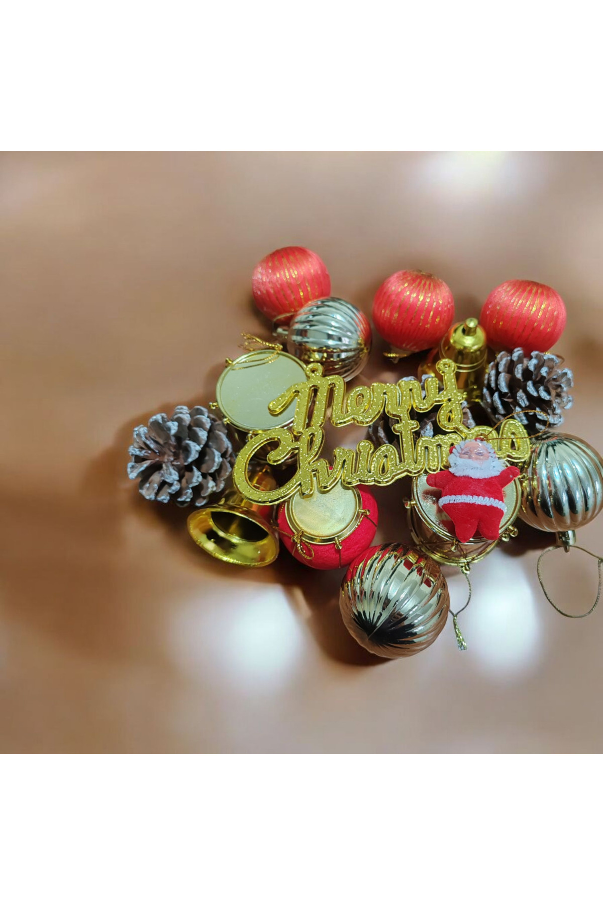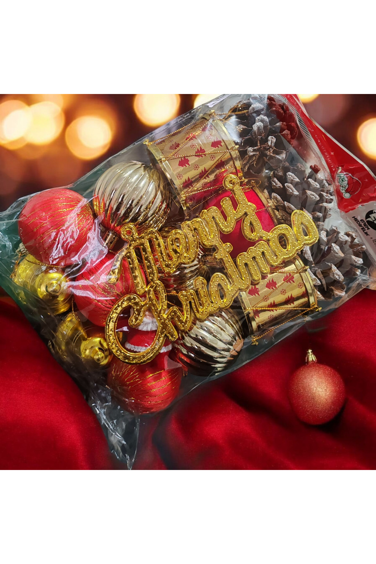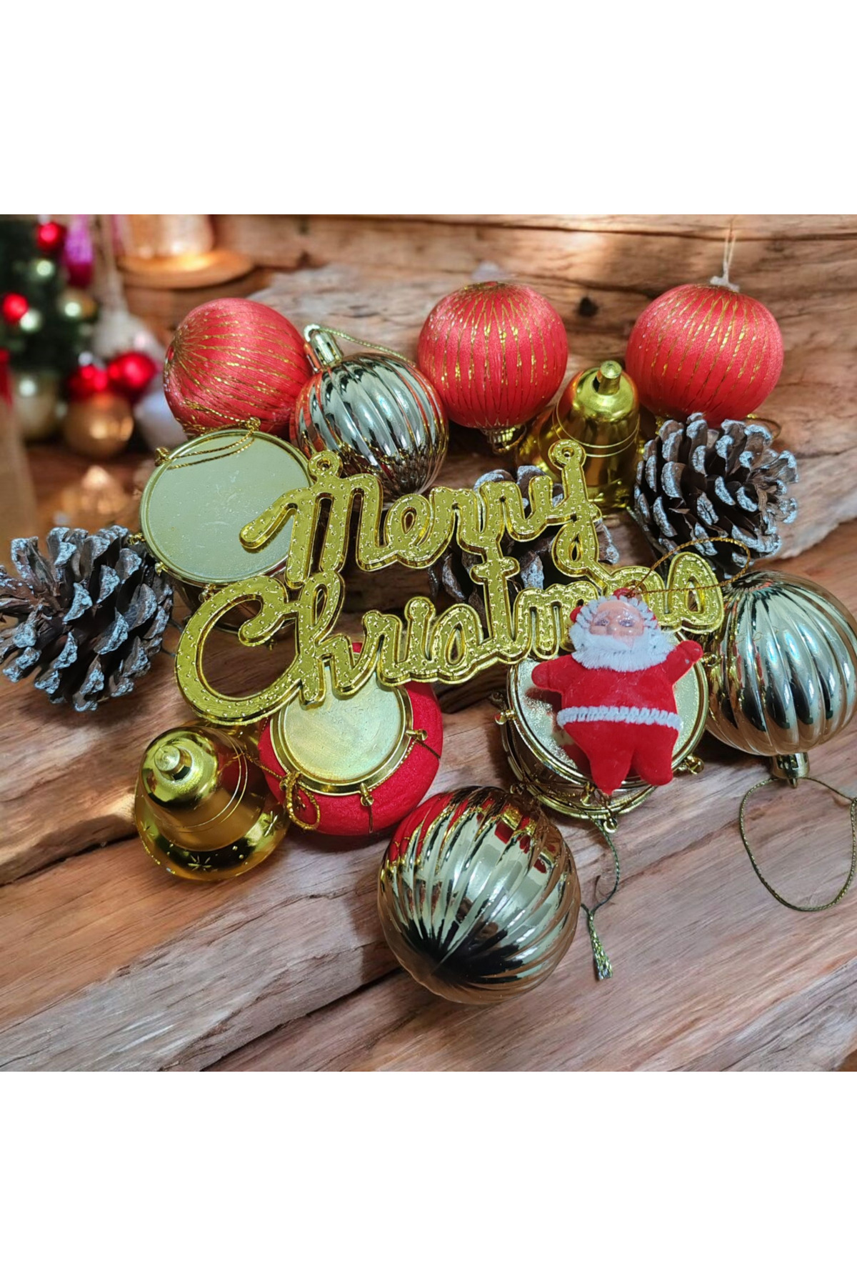 Yılbaşı Çam Ağacı Süsü Seti – Kırmızı & Altın Renkli 17 Lİ BÜYÜK BOY