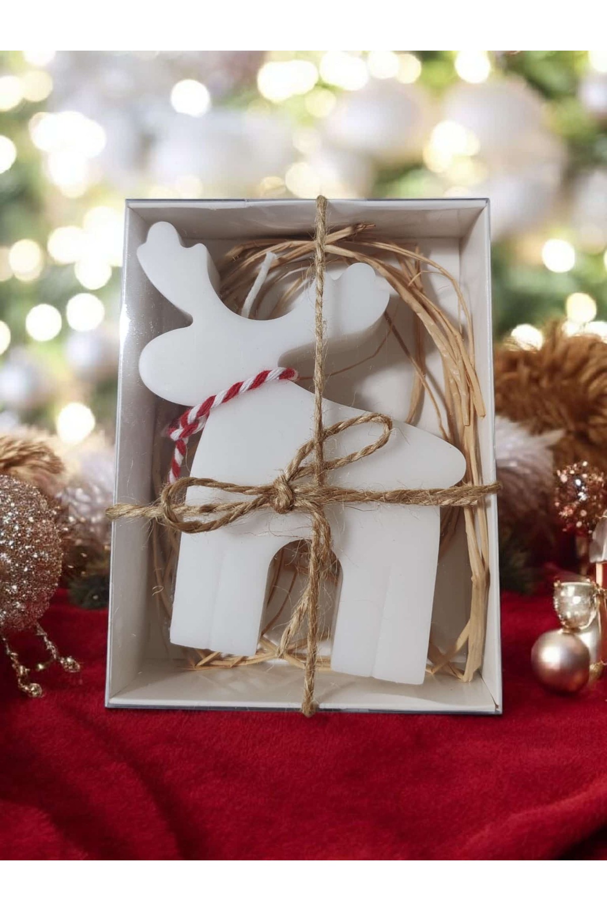 Yılbaşı Temalı Vanilya Kokulu Geyik Figürlü Dekoratif Mum (2’li Set) – 10 cm | 85 gr | El Yapımı